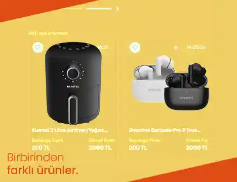 Beğendiğin ürünler için teklif ver ve en yüksek teklifi veren kişi ol. Açık artırma süresi dolduğunda en yüksek teklifi verdiysen ürünü satın alma hakkını kazanırsın.