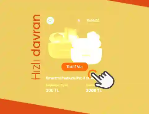Beğendiğin ürünler için teklif ver ve en yüksek teklifi veren kişi ol. Açık artırma süresi dolduğunda en yüksek teklifi verdiysen ürünü satın alma hakkını kazanırsın.